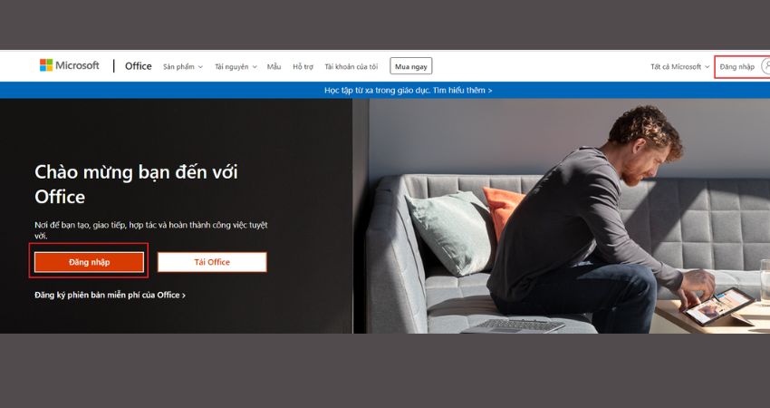 Bước 1: Truy cập www.office.com và chọn "Đăng nhập" nếu chưa đăng nhập