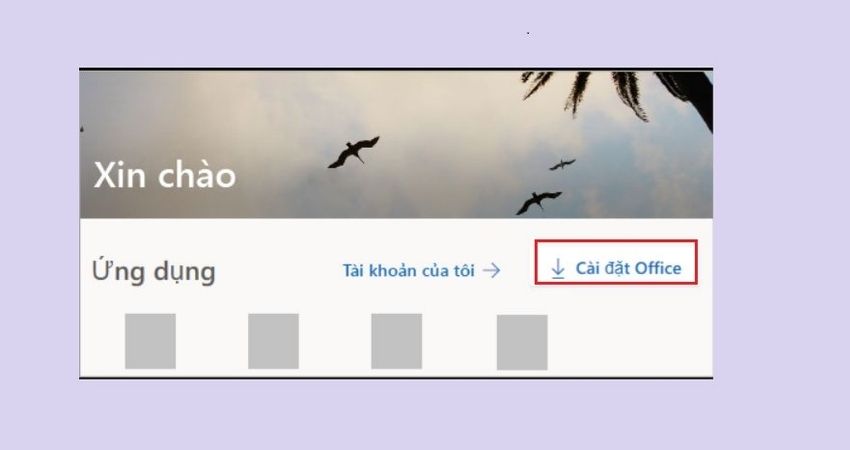 Bước 3: Từ trang chủ Office sau khi đăng nhập, chọn "Cài đặt Office"