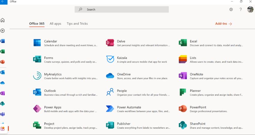 Bước 3: Sau khi cài đặt thành công, màn hình sẽ hiển thị kho ứng dụng Microsoft 365 của bạn